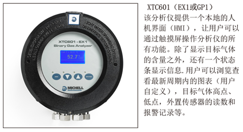 XTC601二元气分析仪用于测量所选气体在二元混合气体中的百分比。采用高质量的热敏电阻,利用气体的热导性,性能可靠并且具有高稳定性。XTP601封装在一个防爆外壳内,防护等级达到ATEX Cat II,适合在危险区域使用。若是安装在非危险区域,也可以提供通用版本。