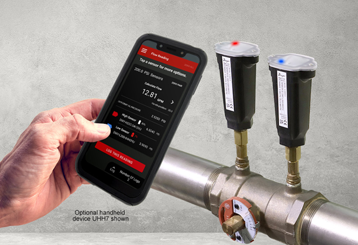 490W系列液用差压测量套件 是目前市场上最方便采用手机操作的精准的差压测量装置。采用无线传感器配合移动设备来监测,单人就能进行全面监测记录来平衡液压系统,和传统的液压平衡仪器相比较,可以节省大量时间。490W系列无线传感器可配合Dwyer的UHH6手持式装置,或配合自己的手机进行差压或流量的监测和记录。采用移动通讯技术通过蓝牙与传感器进行通信,来监测压差和流量。无需采用测量管来连接仪表,也不需安装泄放阀。和490W配合使用的是Dwyer的液压应用软件APP,这个软件包含了很多阀门制造公司阀门制造的特性参数,可将差压转换成流量直接在屏幕上显示。