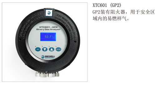 XTC601二元气分析仪用于测量所选气体在二元混合气体中的百分比。采用高质量的热敏电阻,利用气体的热导性,性能可靠并且具有高稳定性。XTP601封装在一个防爆外壳内,防护等级达到ATEX Cat II,适合在危险区域使用。若是安装在非危险区域,也可以提供通用版本。